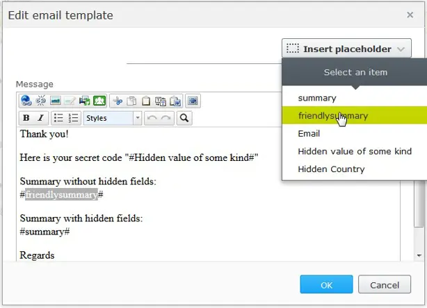 Episerver Forms is getting stronger. Here is a example of the how to customize the summary text with PlaceHolderProvider that is available in version 4.4.